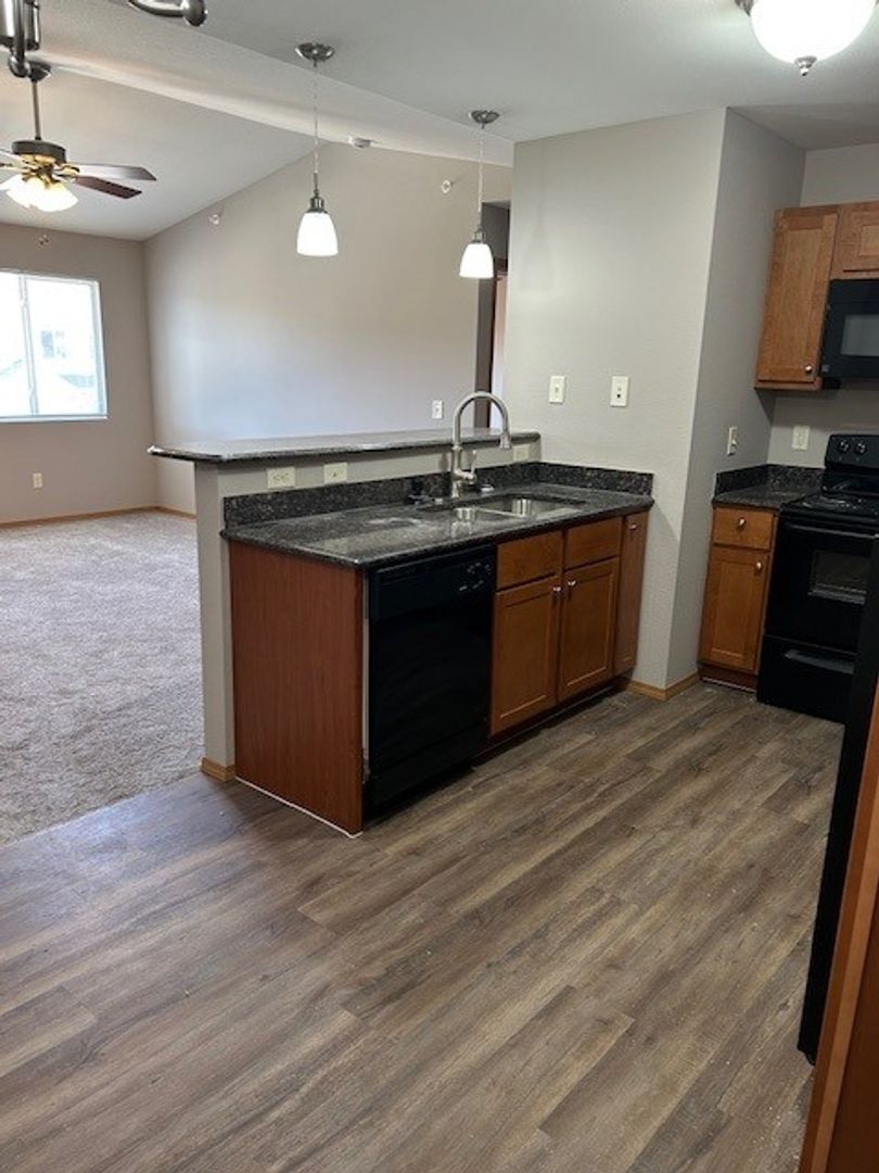 Wingover East features modern apartments and various amenities. These apartments are designed to give maximum comfort, style, and convenience. Each apartment has a private entrance, granite countertops, tile floors, central air conditioning, and walk-in closets. The upper units have a vaulted ceiling. The complex offers the following amenities: clubhouse for meetings and parties, swimming pool, fitness center, putting green, pickleball courts, and a pond. Garages are available for rent for an additional $125 a month.
