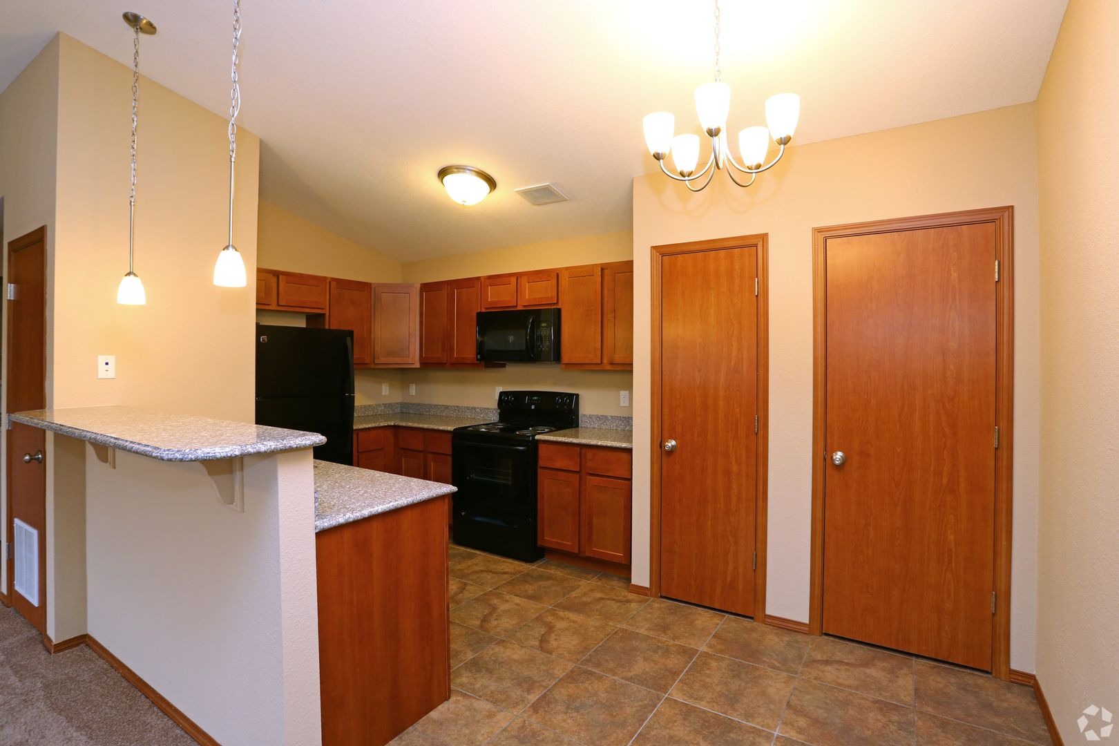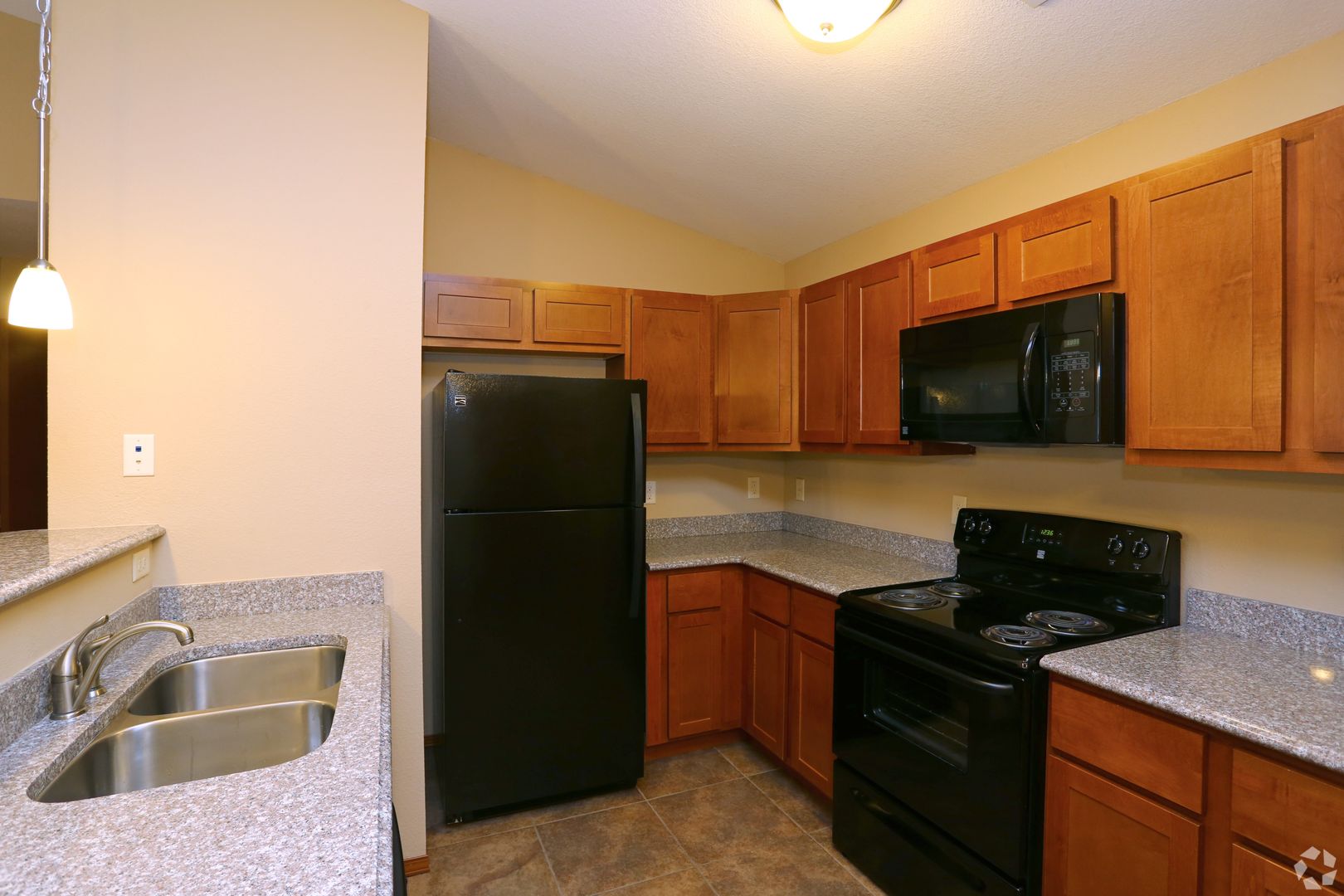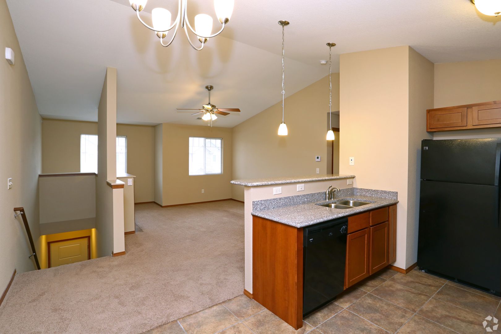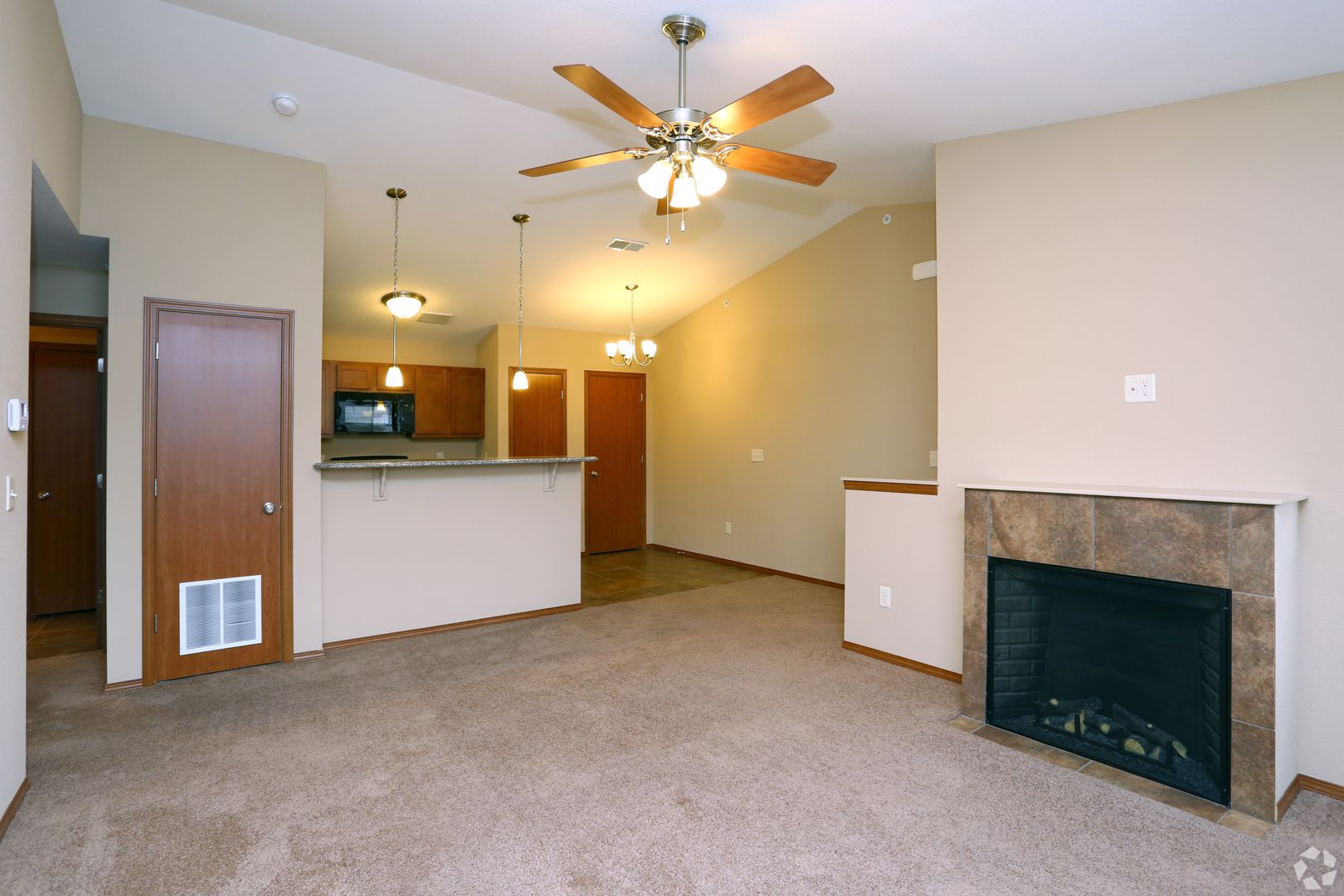 This newer property offers one- and three-bedroom apartments. The living room has a fireplace. The eat-in kitchen has granite countertops and tile flooring. The primary bedroom features a walk-in closet. A full-size washer and dryer are included. There is central air conditioning and ceiling fans. Some of the apartments have vaulted ceilings. These apartments are located within the Unit 5 school district.