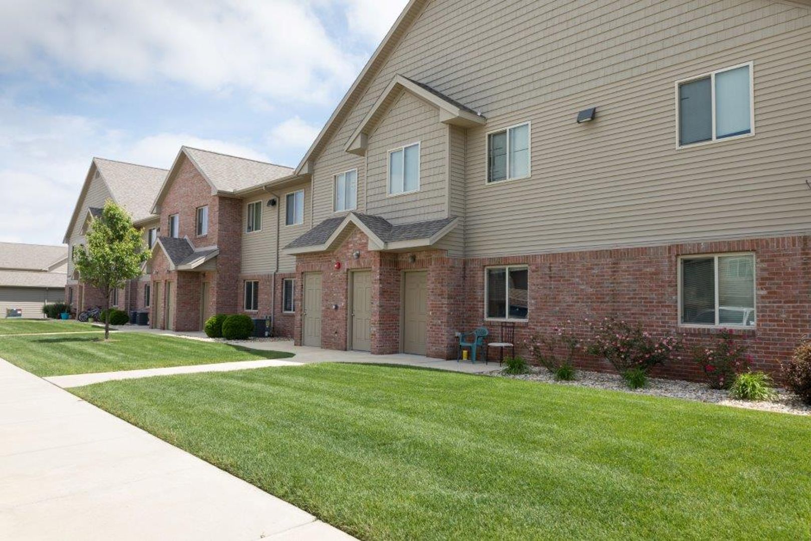 Wingover is our largest apartment complex. These apartments are designed to give maximum comfort, style, and convenience. Each apartment has a private entrance, electric fireplace, granite countertops, and washer/dryer. The complex offers the following amenities: clubhouse for meetings and parties, swimming pool, fitness center, putting green, pickleball courts, and a pond. Garages are available for rent for an additional $125 a month.