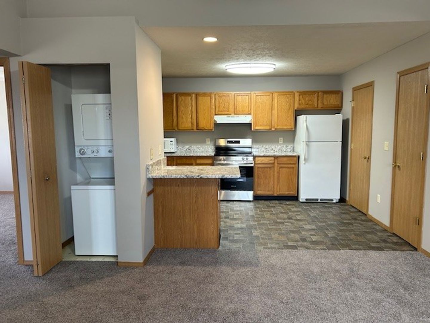 This apartment complex features a fitness room and pickleball courts. All the two-bedroom apartments have a private entrance, electric fireplace, and stackable washer/dryer. The second-floor units also have a vaulted ceiling. There is plenty of off-street parking.