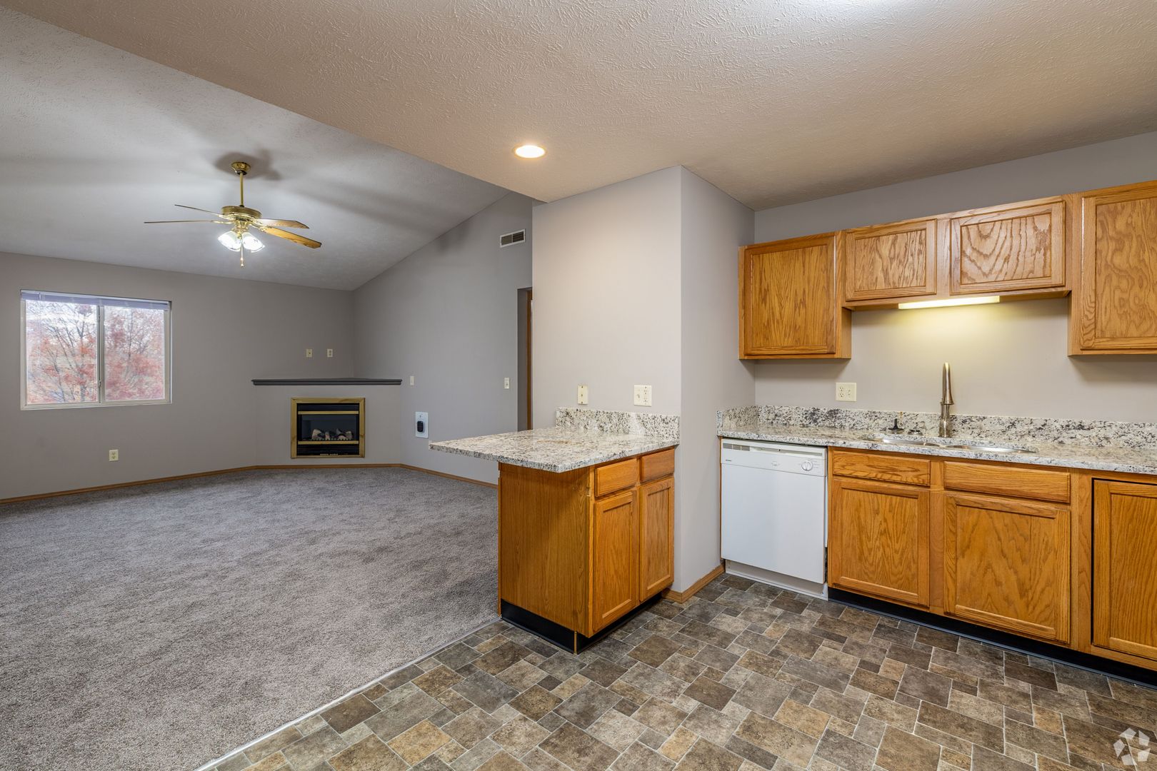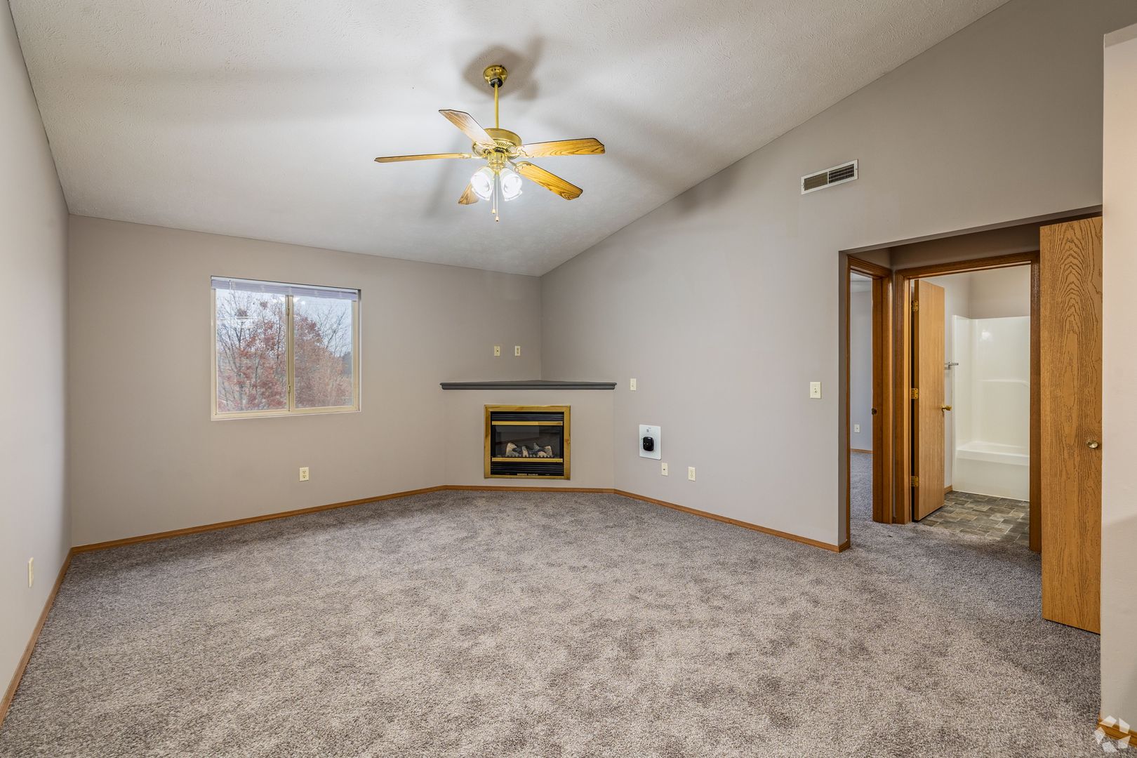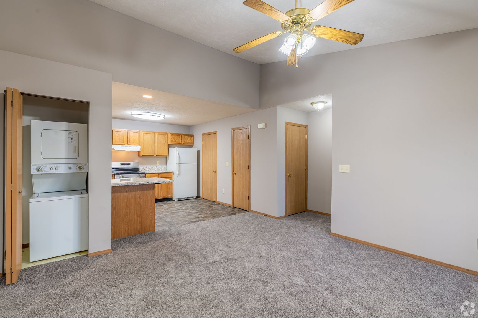 This apartment complex features a fitness room and pickleball courts. All the two-bedroom apartments have a private entrance, electric fireplace, and stackable washer/dryer. The second-floor units also have a vaulted ceiling. There is plenty of off-street parking.
