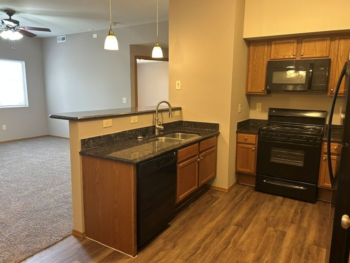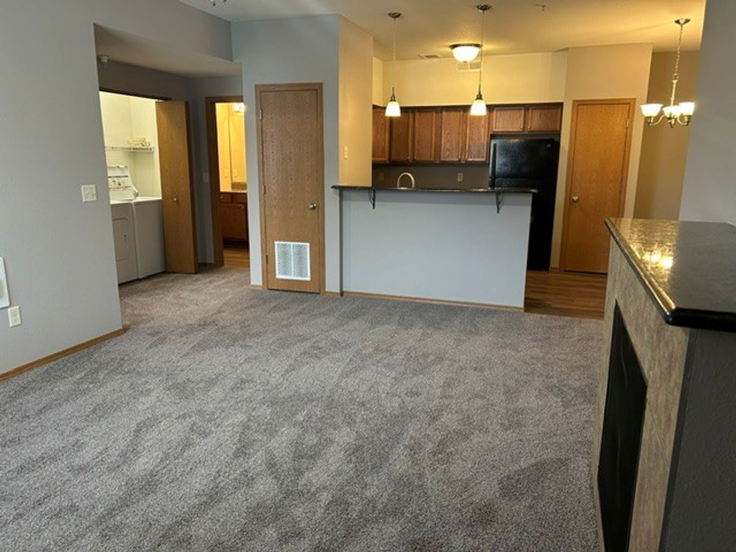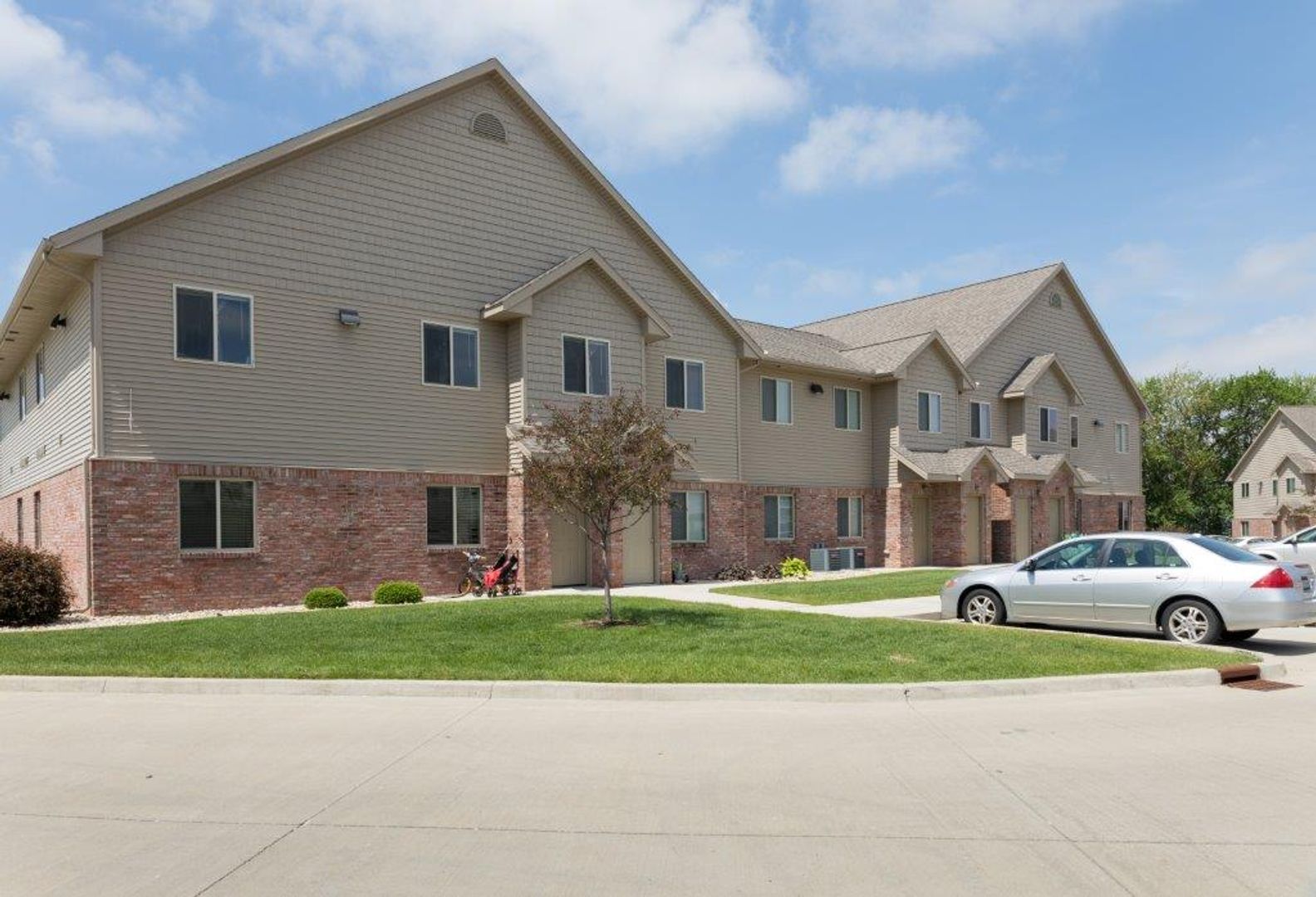 Wingover is our largest apartment complex. These apartments are designed to give maximum comfort, style, and convenience. Each apartment has a private entrance, electric fireplace, granite countertops, and washer/dryer. The complex offers the following amenities: clubhouse for meetings and parties, swimming pool, fitness center, putting green, pickleball courts, and a pond. Garages are available for rent for an additional $125 a month.