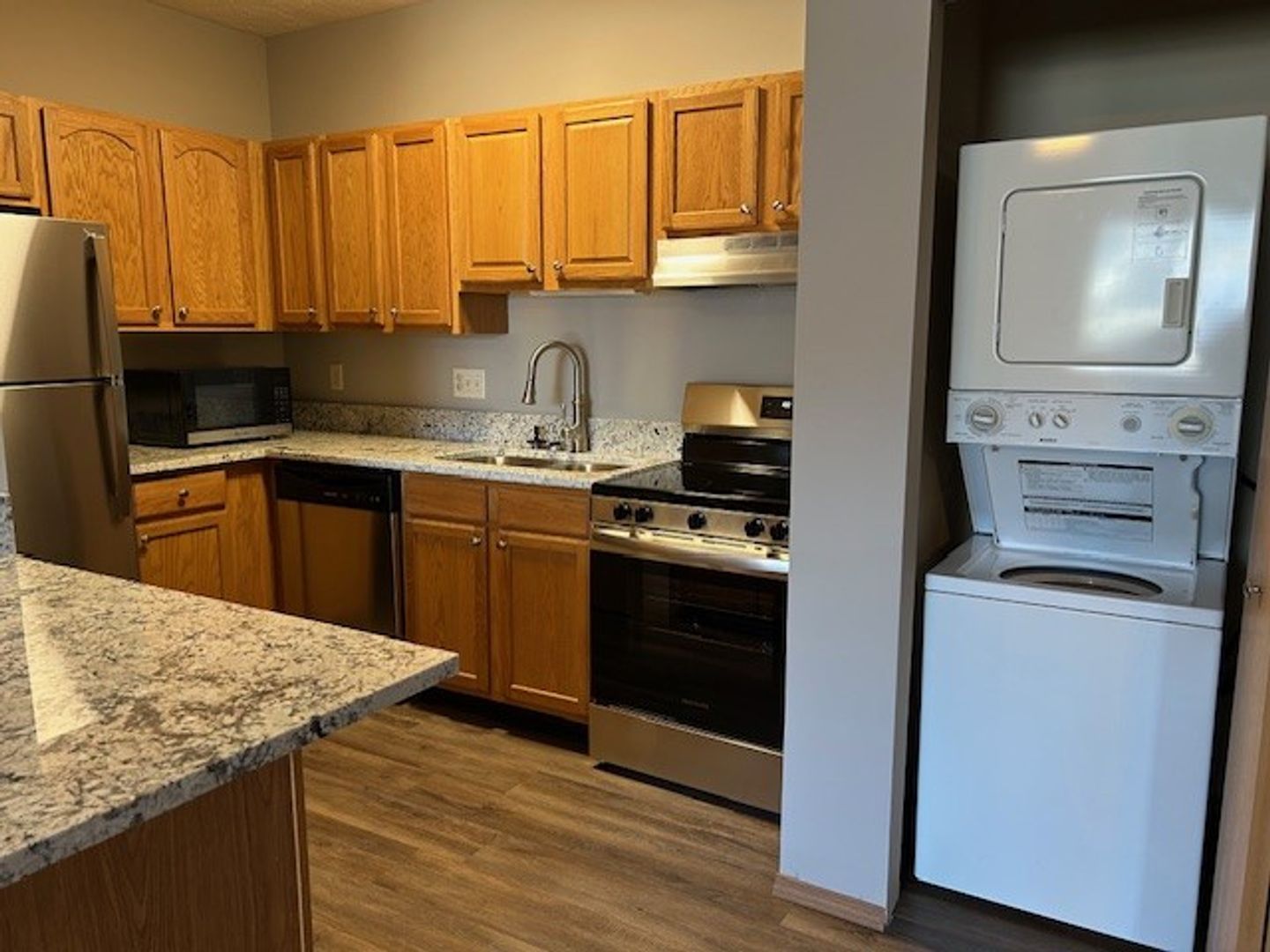 These apartments are conveniently located on the east side of Bloomington. They are close to shopping and the airport. All the one-bedroom apartments feature a private entrance, and a stackable washer/dryer. These apartments do not have a bedroom door. The second-floor apartments have a vaulted ceiling. Off-street parking is also provided.